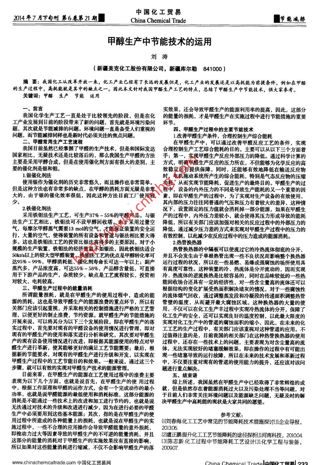 - 期刊名字:中国化工贸易
