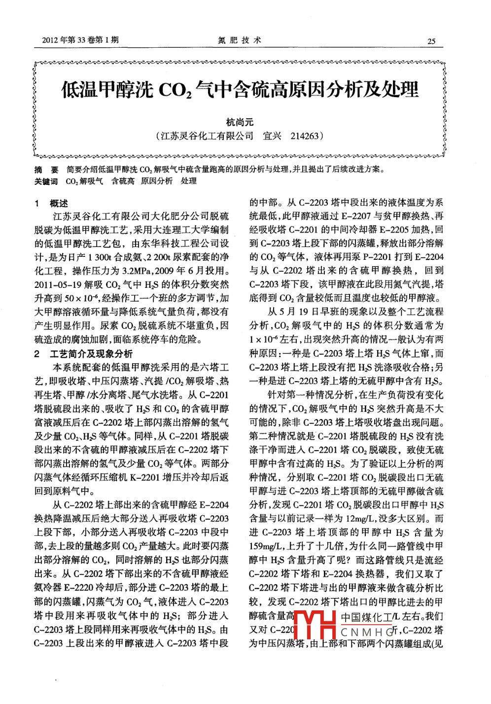 低温甲醇洗CO2气中含硫高原因分析及处理