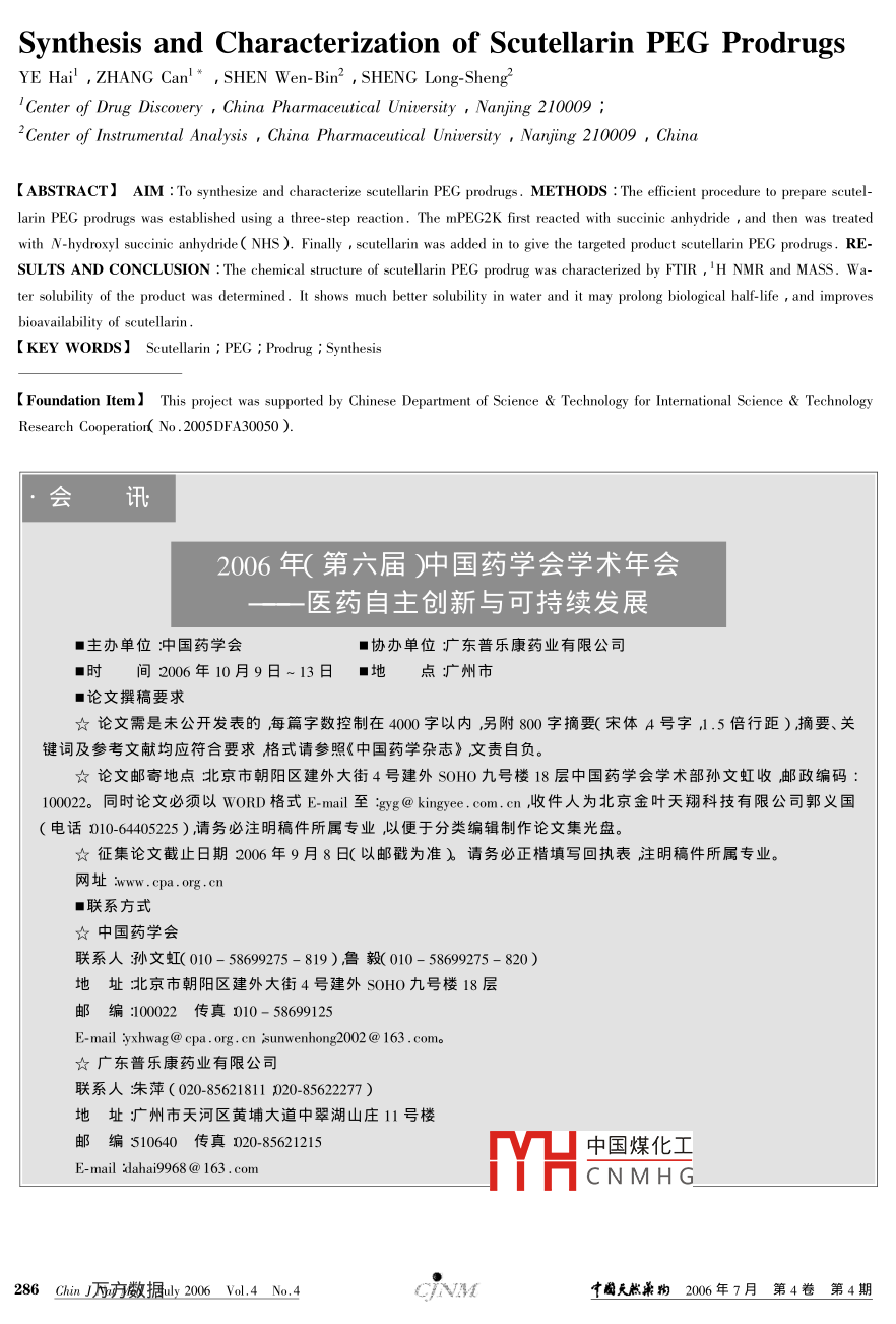 - 作者单位:中国药科大学新药研究中心,中国药科大学分析测试中心