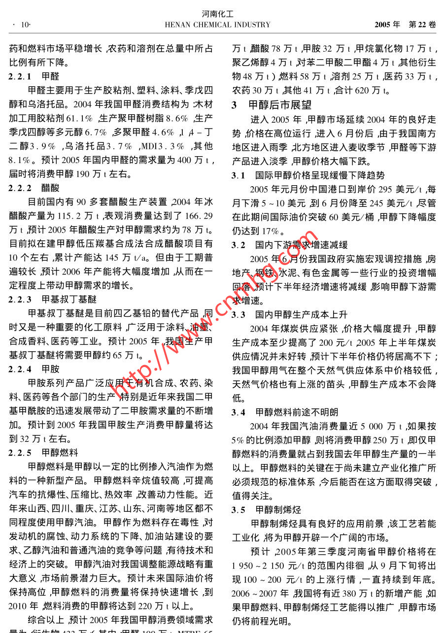 我国甲醇工业现状 2020-03-17