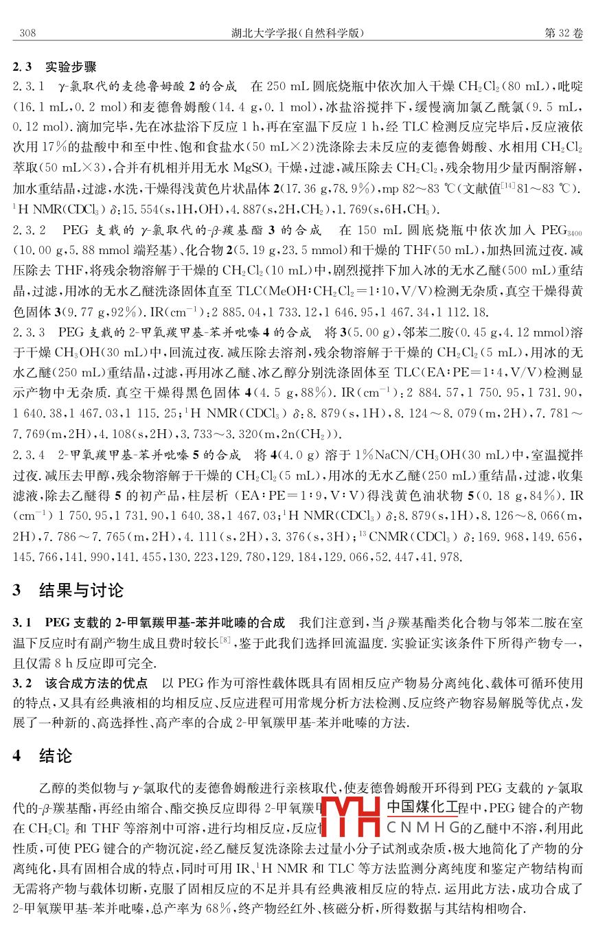2-甲氧羰甲基-苯并吡嗪的聚乙二醇支载合成研究