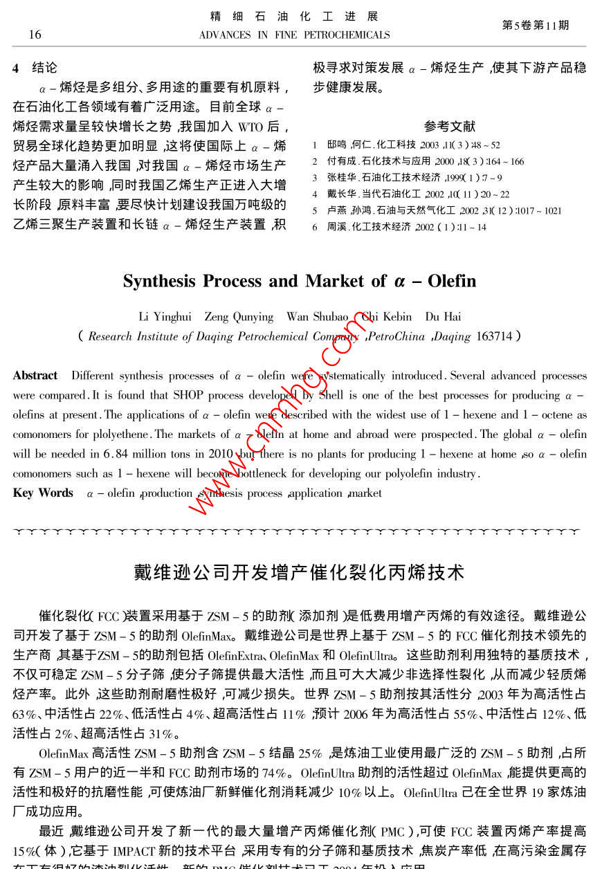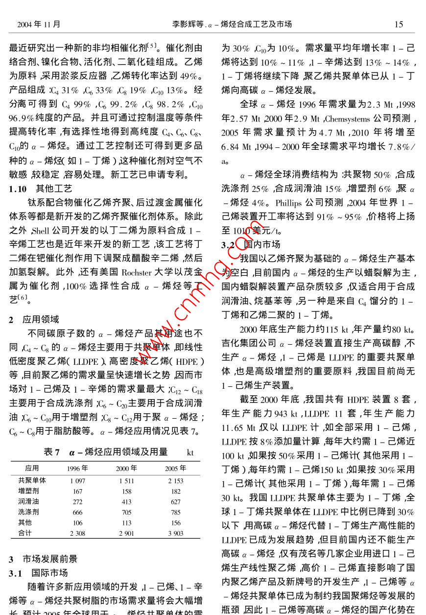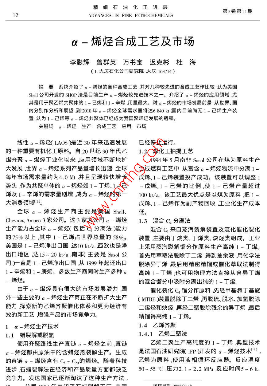 α-烯烃合成工艺及市场