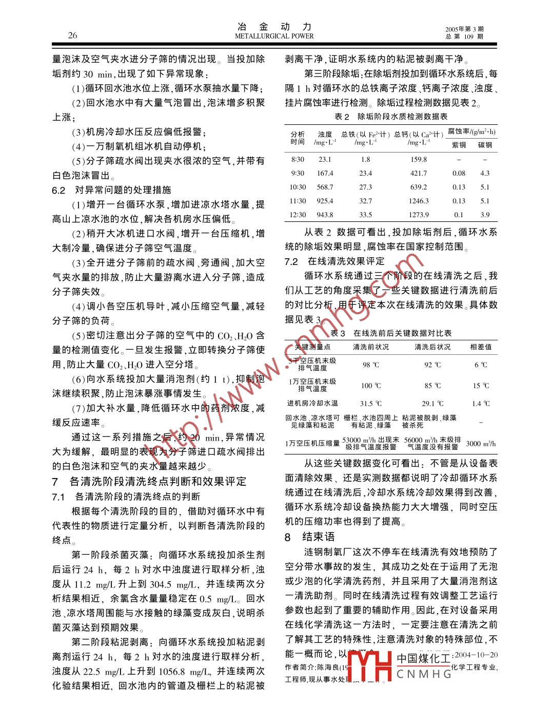 制氧机冷却循环水系统不停车在线清洗预防空分带水的技术应用