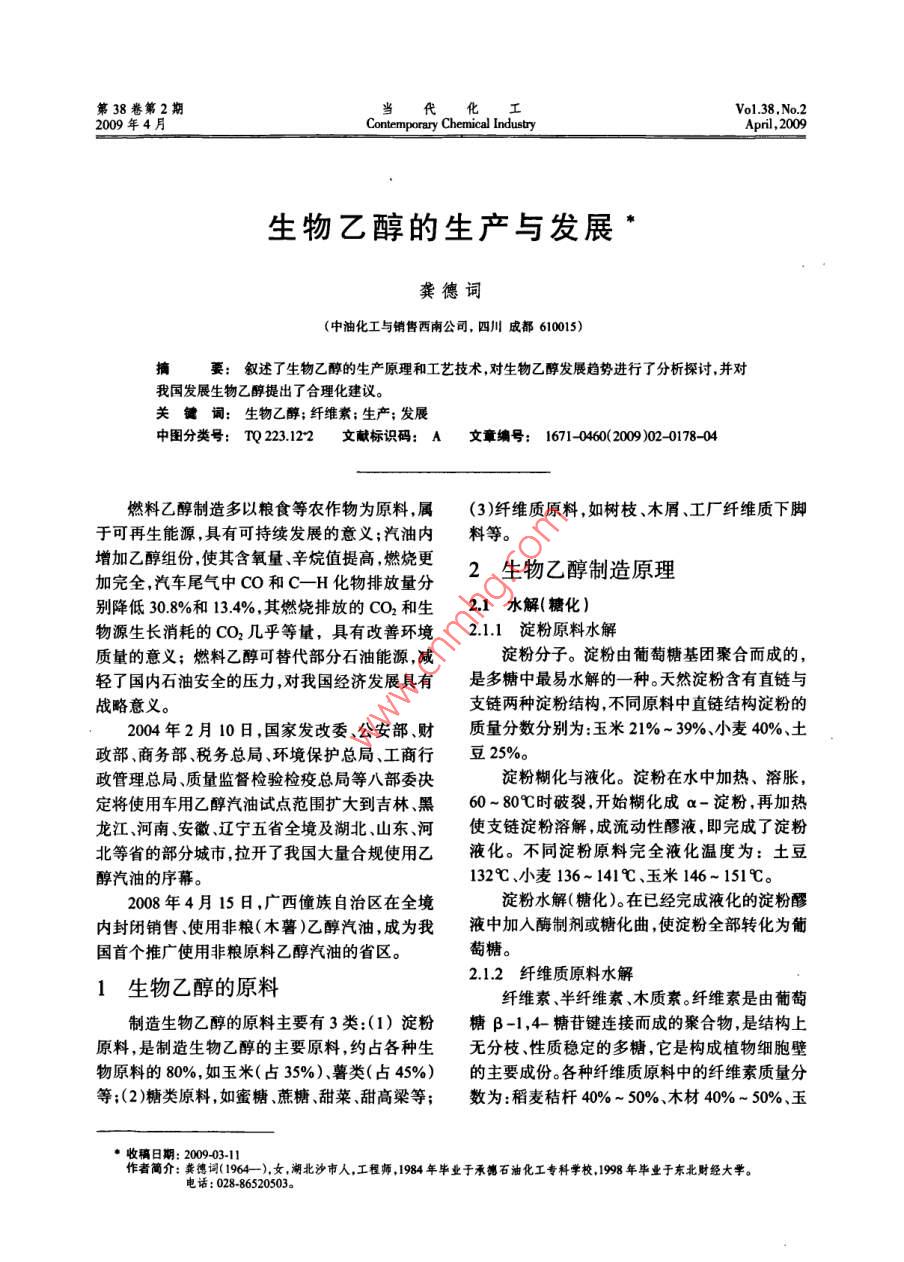 生物乙醇的生产与发展