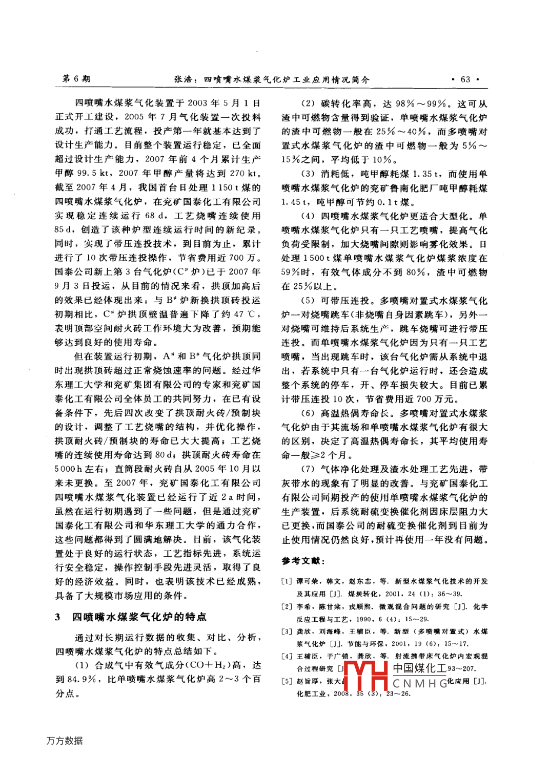 四喷嘴水煤浆气化炉工业应用情况简介 2020-06-12