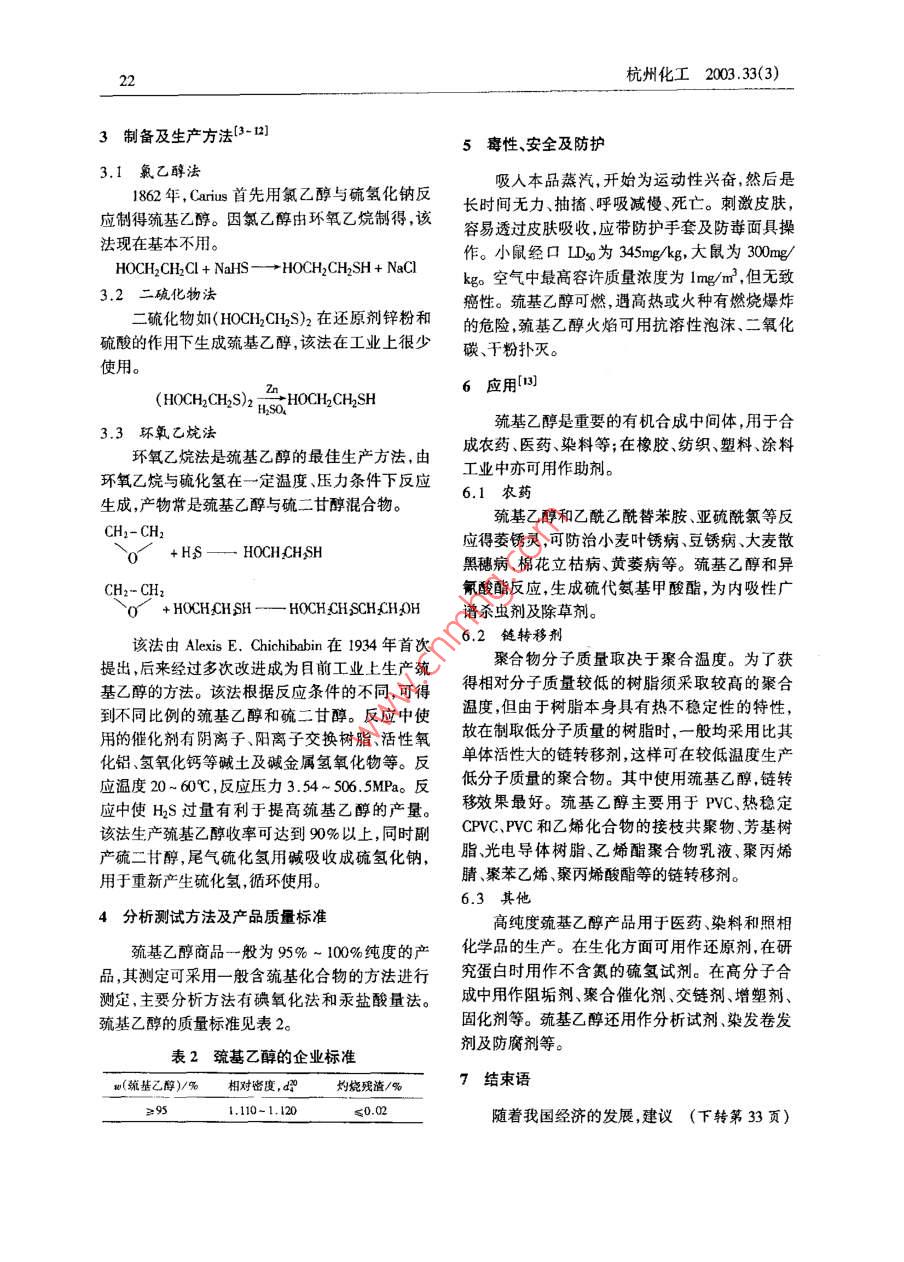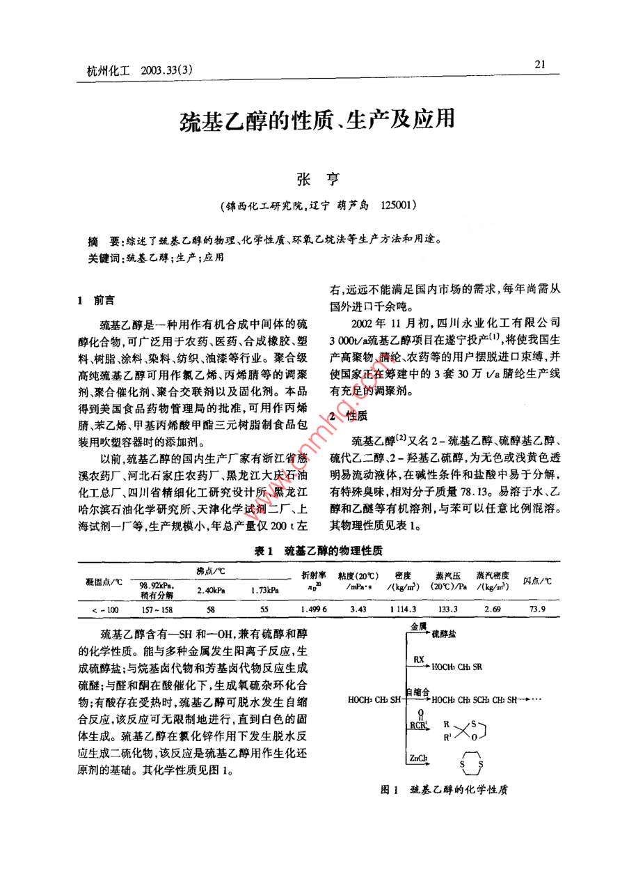 巯基乙醇的性质、生产及应用