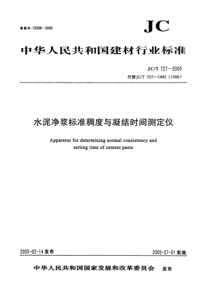 JC/T 727-2005水泥净浆raybet雷电竞电竞app下载地址 稠度与凝结时间测定仪Apparatus for determining normal consistency and setting time of cement paste
