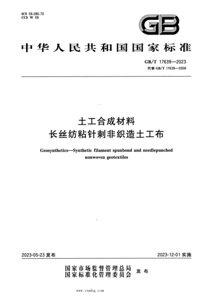 GB/T 17639-2023 正式版 土工合成材料 长丝纺粘针刺非织造土工布