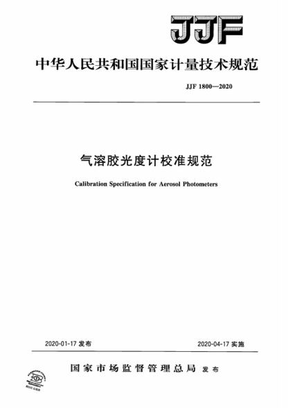 JJF 1800-2020 气溶胶光度计校准规范 Calibration Specification for Aerosol Photometers