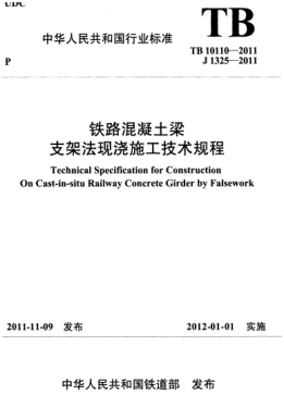 TB 10110-2011 铁路混凝土梁支架法现浇施工技术规程 Technical Specification for Construction On Cast-in-situ Railway Concrete Girder by Falsework